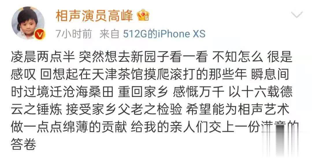 ——纵然有再多的分社,纵然分社开到了大洋彼岸,都不及家乡的一家;纵然在相声界有了不可动摇的地位,纵然有万千喜欢他的粉丝,都不及得到家乡人的认可!